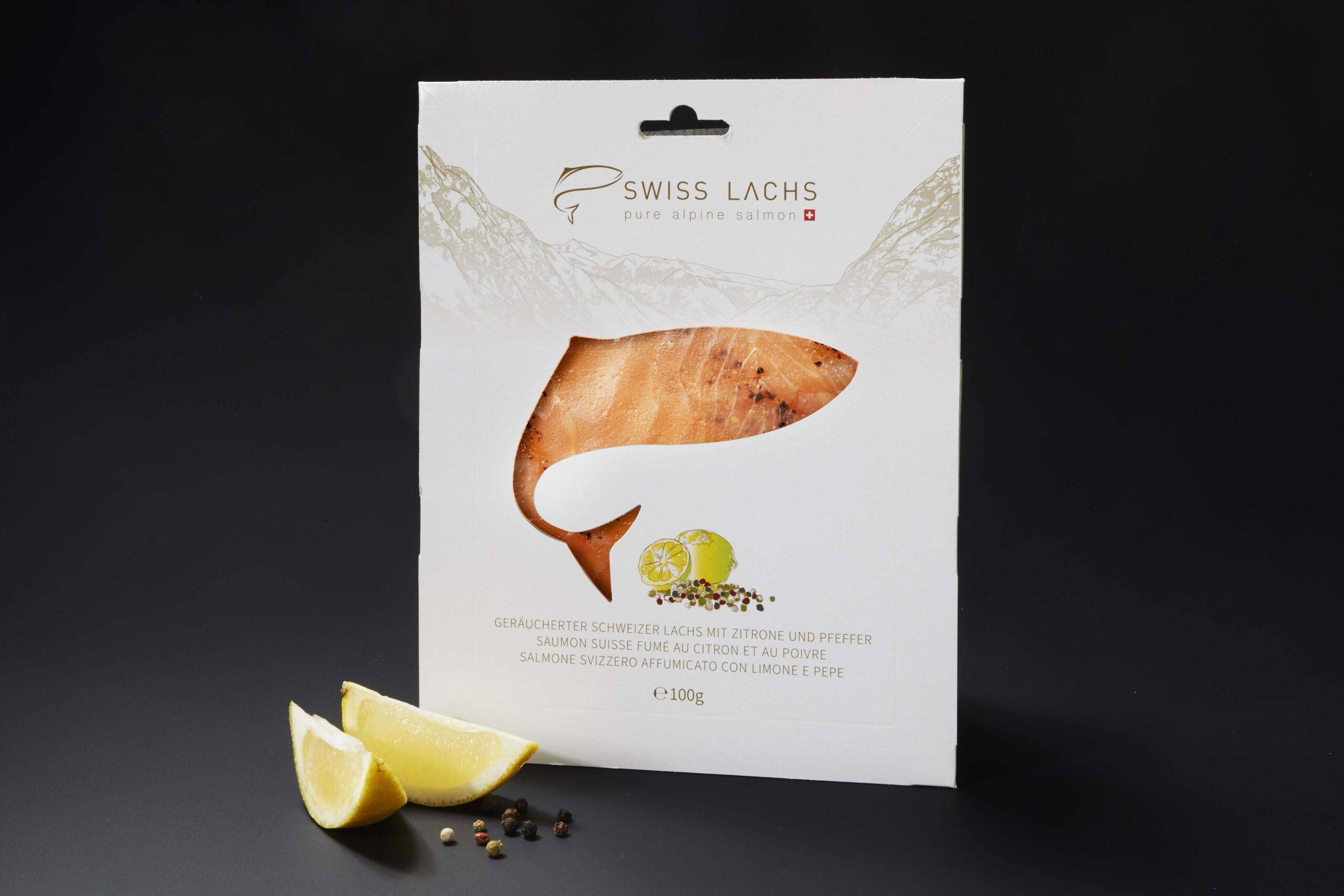 Saumon suisse délicieux de notre ferme salmonicole durable à Lostallo, dans les Grisons, où le saumon est élevé dans l’eau de source selon les normes de qualité les plus élevées – sans aucun produit chimique, antibiotique ou microplastique. Dans notre propre fumoir, le saumon frais est fumé de manière traditionnelle. Pour ce faire, les filets sont d’abord placés dans une marinade de saumure qui agit délicatement sur les filets pendant la nuit. Le raffinement avec un peu de citron et de poivre donne au saumon fumé une saveur individuelle et délicieuse. Le saumon est soigneusement coupé à la main et coupé en tranches régulières dans le sens de la longueur, ce qui préserve sa structure et intensifie sa saveur.