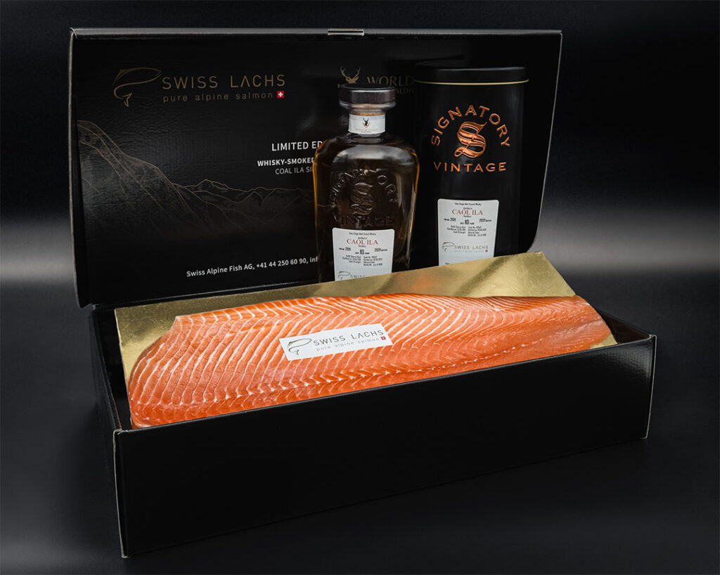 LATO DI SALMONE AFFUMICATO AL WHISKY CON CAOL ILA SINGLE MALT WHISKY IN CONFEZIONE REGALO